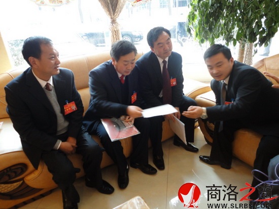 參加市三次黨代會丹鳳代表團代表利用會議間隙討論工作報告。(記者 劉占良 攝)