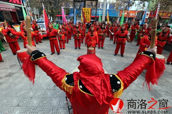 黨代會期間,商州鶴城鑼鼓隊在街頭慶賀表演。">