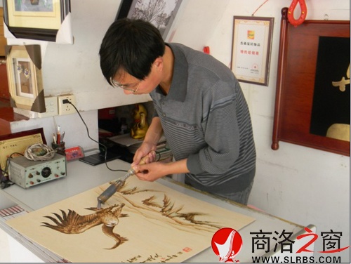 談起自己與烙畫的結(jié)緣往事,何世元不禁感慨萬(wàn)千。出生在商州區(qū)夜村鎮(zhèn)的他,父母雙親是本分善良的莊稼人。或許是天賦使然,自小他就熱愛畫畫,孩提時(shí)代的他,畫里面充滿了童真,夜村的山水、自家的牛羊、自然中的花鳥,都是他筆下的可愛意象。受家中經(jīng)濟(jì)的制約,兒時(shí)的何世元不像現(xiàn)代孩子,有專門的美術(shù)班可供選報(bào),有專用畫紙和不同規(guī)格的畫筆使用,那時(shí)候的他寫作業(yè)用的都是一張能看的出秸稈的泛黃紙,就連這粗制的紙張都不是輕易能得到的。而這一切絲毫沒有影響到何世元畫畫的熱情,空閑時(shí)候的他用樹枝甚至是路邊撿來(lái)的小石頭,在家鄉(xiāng)的小路上開始最初的創(chuàng)作。