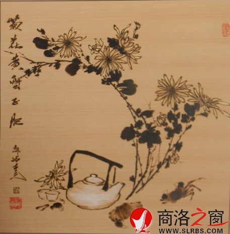 烙畫是中國(guó)傳統(tǒng)畫,也是世界珍稀畫種之一。烙畫亦稱烙花、燙花、火筆畫、"火針刺繡",它是利用碳化原理,通過控溫技巧,不施任何顏料以烙為主套彩為輔的表現(xiàn)手法,在竹木、宣紙、絲絹等材料上勾畫烘燙作畫,巧妙自然地把繪畫藝術(shù)的各種表現(xiàn)技術(shù)與烙畫藝術(shù)融為一體,形成自己的藝術(shù)風(fēng)格。