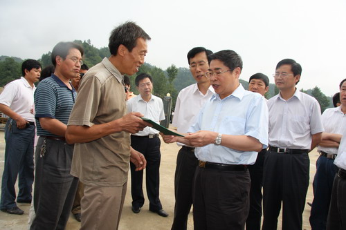 省長袁純清在省林業廳廳長張社年、市委書記魏增軍等領導的陪同下,深入到我市山陽縣視察集體林權制度改革試點工作。袁省長一行來到山陽縣高壩店鎮金山寺村查看了該村何家院組林改宣傳資料、村民會議記錄、外業勘界資料、公示資料和林權證等資料,邊看邊詢問林改工作開展情況。在聽取全市林改進展情況匯報后,袁省長對我市林改工作給予了充分肯定。他指出,在林改工作中,不但要把公益林管好,對于商品林也要堅持森林資源管理政策,加強林木采伐管理,不能出現亂砍濫伐問題。袁省長關切詢問目前我市林改當中還有什么需要解決的問題,當得知我市還存在公益林生態效益補償未到位,工作經費缺口大等問題時,表示會盡快解決這些問題。袁省長與在場的金山寺村村民王太山親切交談,王太山拿著剛領到的林權證,高興的對袁省長講:這次確權給我劃定了16畝自留山,4塊76畝管護山,還拿到了林權證,給我吃了定心丸。袁省長問分到林子后有什么收益時,王太山高興的回答,分到林子,我可以放心的栽樹,現在國家允許申請采伐,我準備發展一些食用菌來增加收入。袁省長對在場的干部群眾講:現在中央林改意見發了,我們要認真貫徹中央林改意見精神,扎扎實實推進集體林權制度改革工作,盡快把集體林承包到戶,給農民把好事辦好,集體林分到戶后,首先要保護好,管理好;其次要開發好,利用好,讓林權制度改革成為增加農民收入的一個新的推動點。