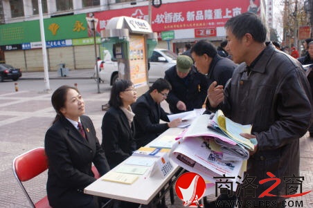 本網(wǎng)訊 (侯向鋒)12月4日,商洛中院干警上街開展法制宣傳,共接到群眾30余人,發(fā)放宣傳冊200余冊。(侯向鋒 攝)