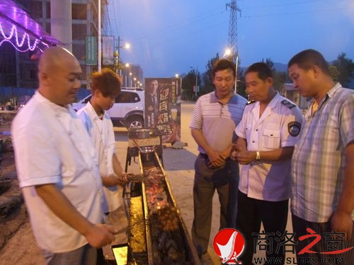 商洛日報社(劉春榮)丹鳳縣食品藥品監(jiān)督管理局為確保廣大消費者夏季燒烤食品安全,近日組織執(zhí)法人員對全縣27家夜市燒烤經營戶進行了專項執(zhí)法檢查。據介紹,這次檢查取締違法經營1家,沒收不合格肉制品1.6公斤、發(fā)放監(jiān)督意見書27份、責令改正12戶。圖為執(zhí)法人員正在依法進行燒烤食品安全執(zhí)法檢查。