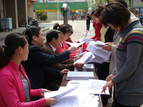 4月24日,商洛市審計局利用周末時間,組織全體干部職工40多人上街宣傳新修訂的《審計法實施條例》。現場共發放《中華人民共和國審計法實施條例》翻印本1000余冊,宣傳提綱1000余份,并將新修訂的《審計法實施條例》錄音,向廣大市民廣播宣傳。在醒目的宣傳標語下,審計干部熱情洋溢,認真細致的回答觀眾的提問,現場解答市民提問100人次,達到了良好的宣傳效果。