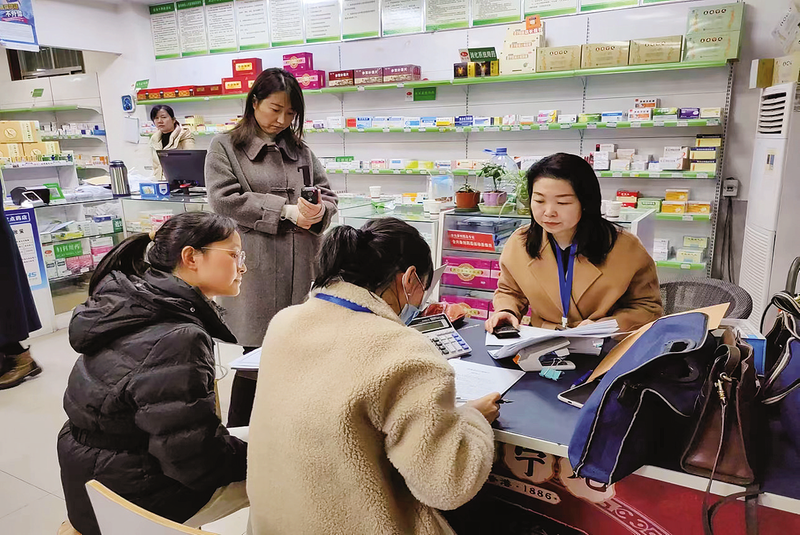 工作人員在定點零售藥店專項檢查