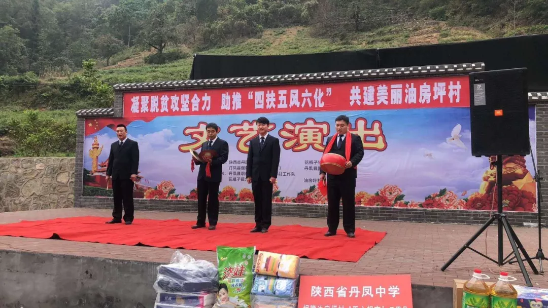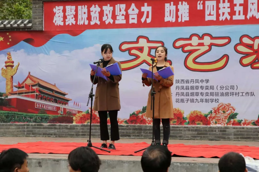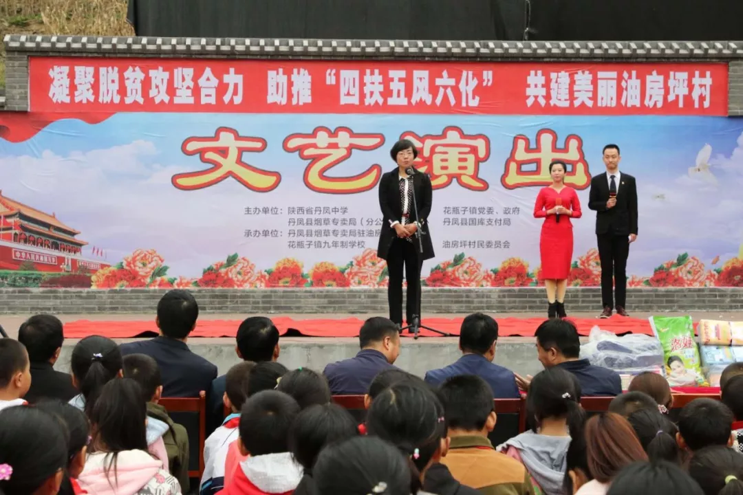 銳意扶貧播大愛,勤勞致富奔小康,正當脫貧攻堅進入攻堅拔寨的沖刺階段,10月17日,在舉國上下開展“第五個全國扶貧日”之際,由陜西省丹鳳中學、花瓶子鎮黨委政府、丹鳳縣煙草專賣局、丹鳳縣國庫支付局主辦,丹鳳縣煙草專賣局駐油房坪村工作隊、花瓶子鎮九年制學校、油房坪村民委員會共同舉辦《凝聚脫貧攻堅合力、助推“四扶五風六化”共建美麗油房坪村》文藝演出。