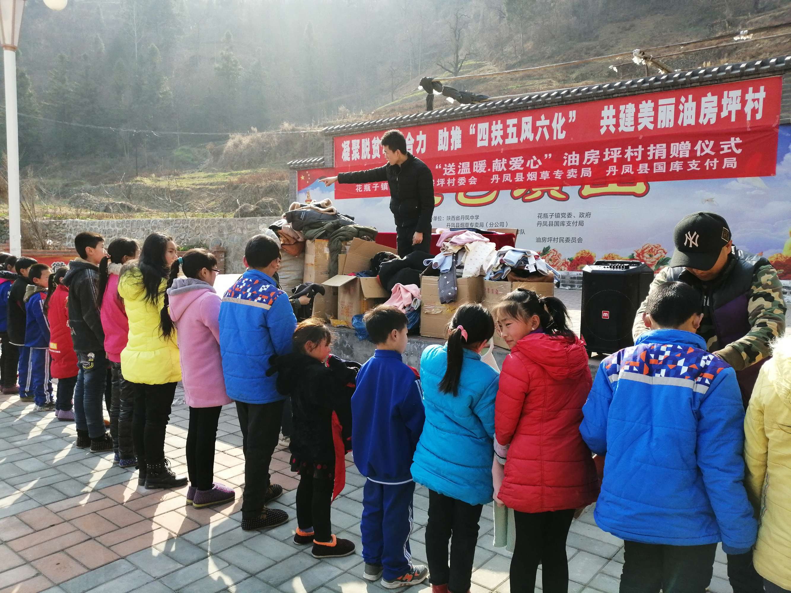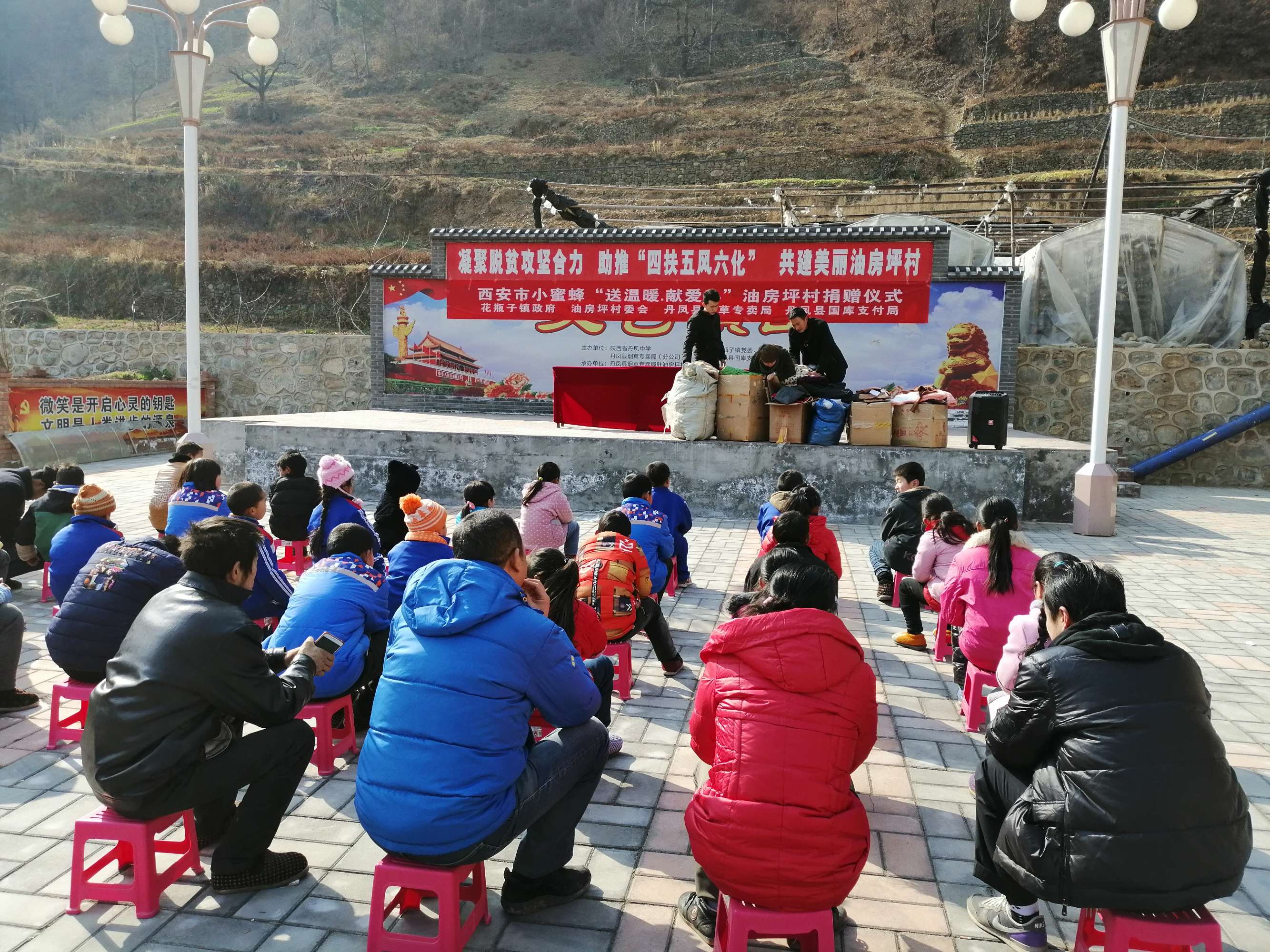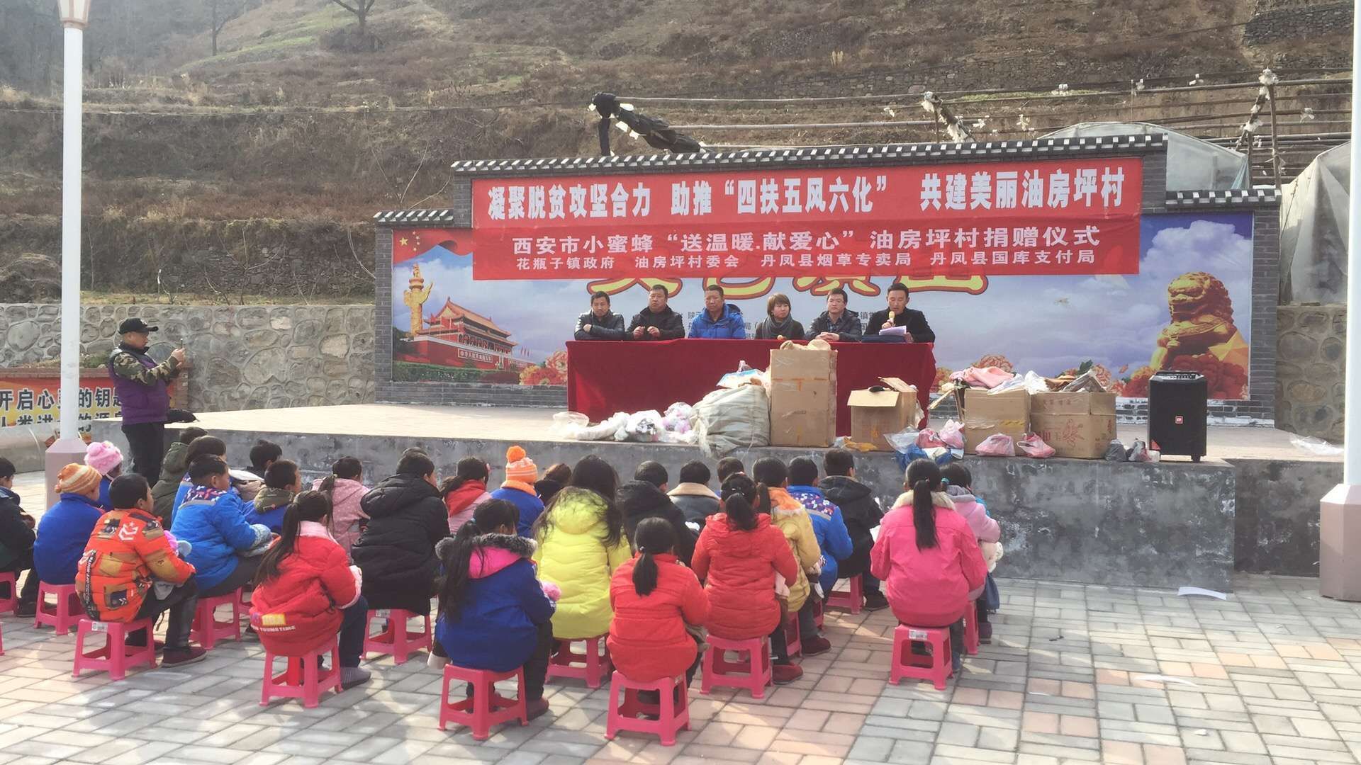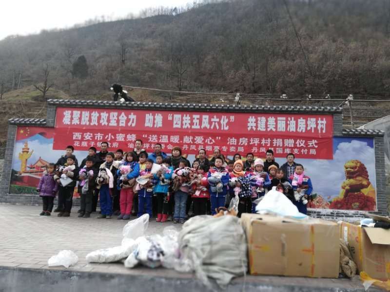 2018年1月19日,西安市小蜜蜂慈善公益組織負責人汪女士,攜手丹鳳縣煙草局黨支部、丹鳳縣國庫支付局黨支部暨花瓶子鎮政府,冒著嚴寒,從西安省城來到油房坪村,開展“送溫暖、獻愛心”溫暖衣發放儀式,對30名留守兒童發放羽絨服、保暖內衣、圍巾、耳套、鞋子、裙子等價值1萬余元物品,用實際行動詮釋著人間最質樸的愛,受到捐贈的留守兒童,他們非常感謝黨和人民的關懷以及社會這么多好心人為他們送去的衣物,在以后的生活學習中,學會感恩,以優異的成績回報各級領導以及社會的關懷。