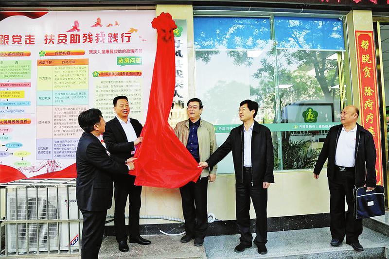 4月26日,中殘聯(lián)輔具中心主任李晞(中),省殘聯(lián)副理事長蘭孟偃、副巡視員郜廣尉,商洛市政府副市長李華、商洛市殘聯(lián)理事長房立學(xué)為丹鳳縣殘疾人輔助器具服務(wù)站揭牌。
