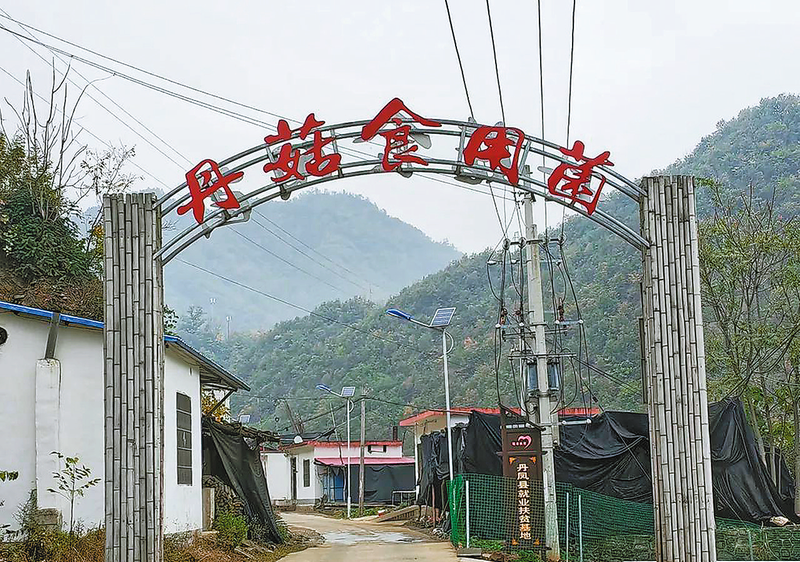 從蔣家莊跨過一道斜碥,進入丹鳳境內,來到梅莊村,映入眼簾的是“丹菇食用菌”產業基地的拱門。
