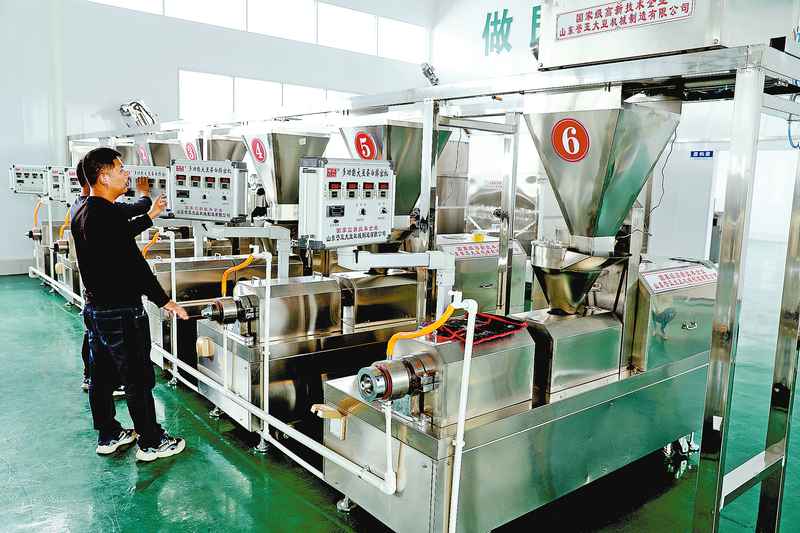 △位于竹林關鎮(zhèn)的陜西李氏凱農(nóng)生物科技有限公司主要加工魔芋制品,今年該公司又引進了豆制品生產(chǎn)線。圖為工作人員在調(diào)試新設備。