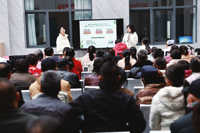 南京市第一醫院專家來丹鳳開展大型學術交流活動,陳夢星醫生(左)為患者進行知識科普。