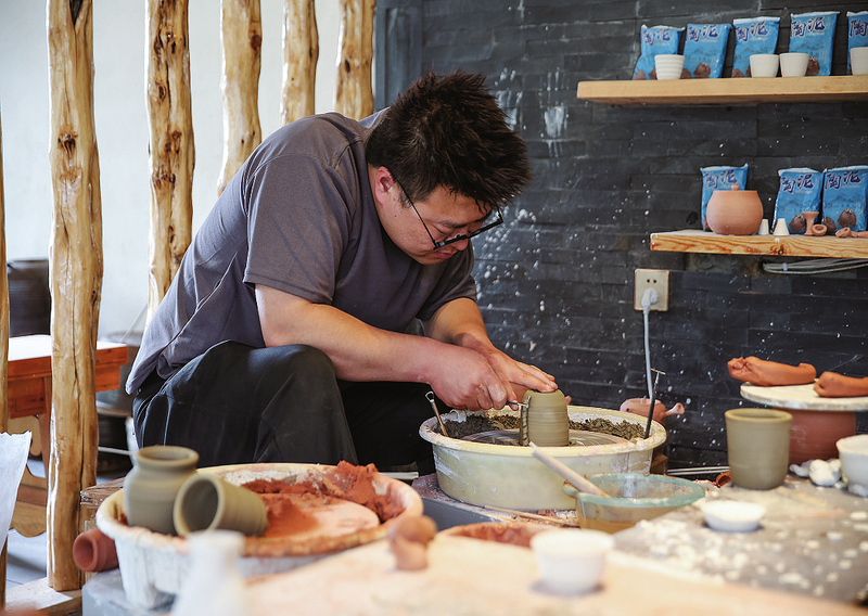 甕窯技藝傳承人正在打磨陶具