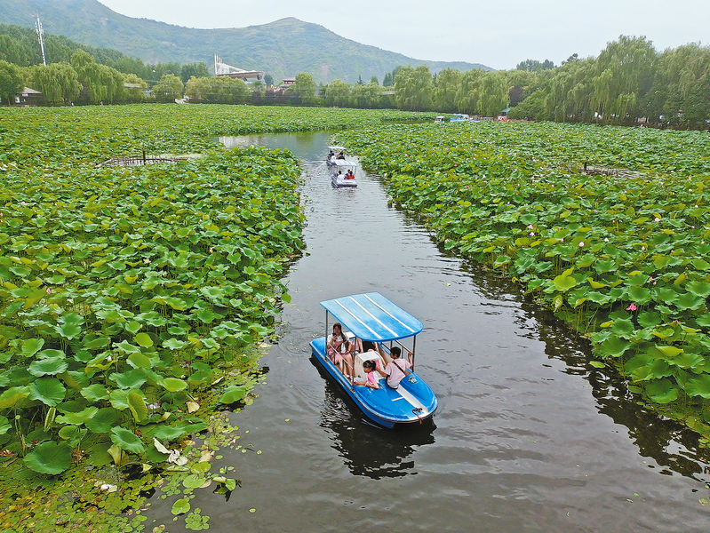 蓮葉何田田,魚戲蓮葉間。近日,丹鳳縣棣花古鎮內的荷花已悄然綻放,初露嬌美面龐,在陽光的照射下,粉色花瓣晶瑩剔透,翠色荷葉層層疊疊,吸引游客前來觀賞游玩,盡情感受商洛生態之美。