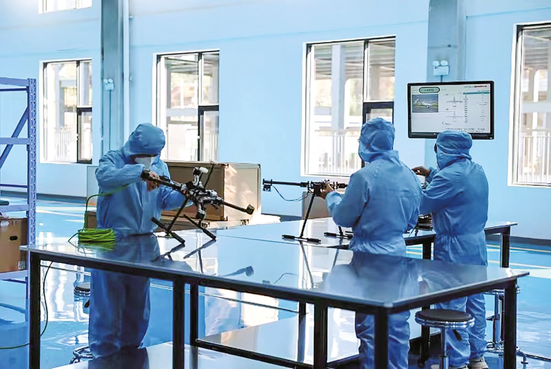 中天禹辰無人機生產線上,工人正在組裝配件。