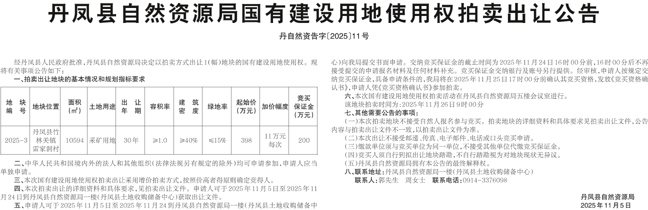 丹鳳縣自然資源局國有建設(shè)用地使用權(quán)拍賣出讓公告
