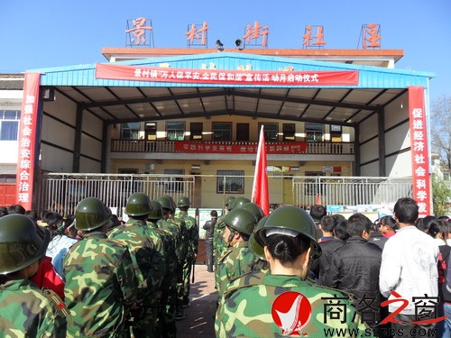 本網(wǎng)訊 (郭夏季)11月3日中午,洛南縣景村鎮(zhèn)“萬人保平安,全民促和諧”宣傳活動(dòng)月啟動(dòng)儀式,在景村街社區(qū)廣場隆重舉行。來自鎮(zhèn)機(jī)關(guān)、鎮(zhèn)屬12個(gè)單位及景村中學(xué)的200余名干部、職工、學(xué)生和千余名群眾,參與了啟動(dòng)儀式。