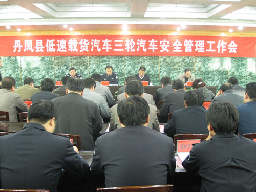 為了加強對低速載貨汽車三輪汽車(簡稱農用車)交通安全管理,3月30日丹鳳縣政府召開全縣農用車交通安全管理工作會議。(圖片 白光清)