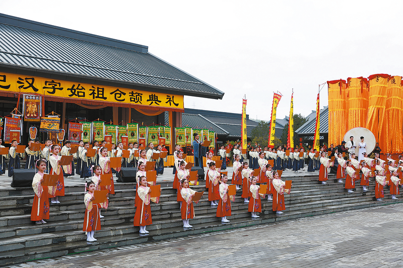 祭祀典禮上,各界嘉賓、文化藝術界代表、民間團體以及群眾代表共聚倉頡小鎮,按照敬獻花籃、全體人員向倉頡圣像三鞠躬、恭讀祭文、樂舞告祭等環節進行祭祀典禮,舉辦豐富多彩的民俗展演活動,深切緬懷漢字始祖倉頡的豐功偉績,表達炎黃子孫對漢字始祖無限敬仰和無比崇敬的心情。目前,洛南縣以倉頡傳說為核心主題,依托倉頡造字遺跡群,打造倉頡文博館研學、親農·溪樂谷休閑度假民宿、倉頡文化旅游康養等板塊,形成集“文、教、養、游”于一體的特色景區,已成為探索漢字起源及發展、傳承中華文明的重要窗口。