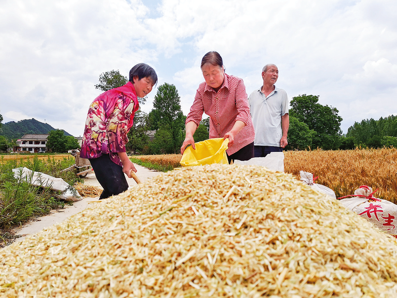 “夜來南風起,小麥覆隴黃”。唐代詩人白居易在《觀刈麥》中這樣描寫麥熟的景象。麥收時節(jié),此情此景,在何村鋪展開來。