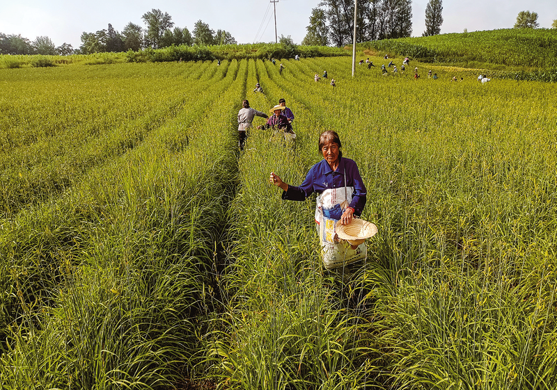 當天早晨6時許,30多名務工群眾在黃綠相間的地里來回穿梭。“摘黃花菜要趁早!”趙川村72歲的村民楊九生一邊采摘一邊樂呵呵地說,“每年到了黃花菜采收季節,我都會來合作社務工,采了五六年的黃花菜,采摘越來越熟練了,現在一天可以采八九十斤,按每斤0.8元的勞務費算,一天有六七十元的收入。年齡大了,在家門口能掙些零花錢,我挺知足的。”