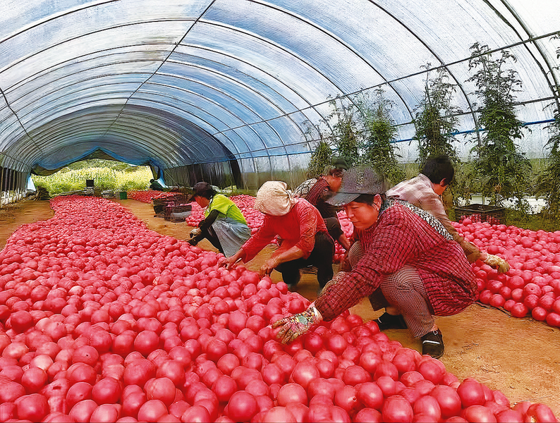 村民在分揀西紅柿
