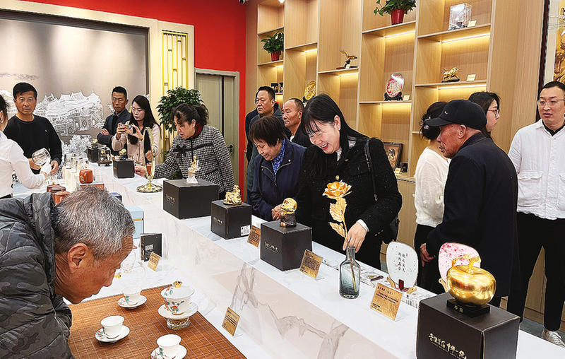 10月17日,走進洛南縣城關街道的金陵金箔展銷館,造型各異、形式多樣的金箔產品琳瑯滿目,幾位顧客正在挑選金箔產品。展銷館內,從文創產品、隨身配飾、家庭裝飾到各類擺件、季節性熱銷產品等,上百個金箔產品品種滿足了消費者的需求。