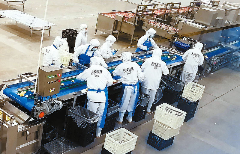 近年來,洛南縣把核桃作為農業首位產業,依托西北核桃物流園,延長產業鏈條,傾力打造核桃百億級產業集群,推動核桃產業發展。圖為11月25日,在位于洛南縣西北核桃物流園內的陜西天榛食品科技公司生產線上,30多名工人正在加工果干。 (本報通訊員 閆偉鋒 攝)