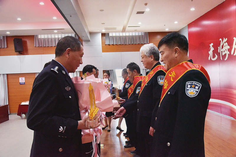 榮休暨入警榮譽(yù)儀式在莊嚴(yán)的國(guó)歌中拉開(kāi)帷幕。榮休儀式上,洛南縣公安局班子成員集體為2023年至2024年光榮退休的薛社民、孫寅生等17名老民警贈(zèng)送象征“一帆風(fēng)順·載譽(yù)而歸”的榮休紀(jì)念品,并表達(dá)了美好祝愿。出席榮休儀式的老民警滿(mǎn)懷激情回憶了30余載從警歷程,暢談了工作、學(xué)習(xí)、生活感悟,表達(dá)出他們對(duì)黨的公安事業(yè)無(wú)限忠誠(chéng)和熱愛(ài)之情、感激之情、不舍之情,同時(shí)寄語(yǔ)在崗民輔警踔厲奮發(fā)、篤行不怠,積極為全縣公安事業(yè)增磚添瓦,貢獻(xiàn)力量。