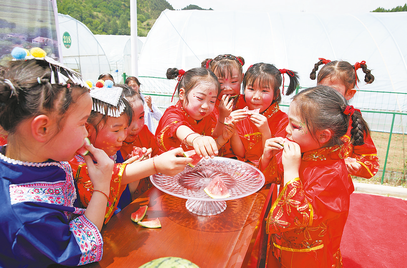 “這黃瓤西瓜比蜜還甜。”“那邊的本地黃瓜得趕緊囤點。”6月6日,洛南縣古城鎮中聯村人頭攢動,以“品美味西瓜,購農特產品,享美好生活”為主題的寧農瓜果蔬菜產業園西瓜上市暨農特產品展銷活動火熱開幕,人們一邊品嘗著一口爆汁的西瓜,一邊欣賞文藝演出,園區里歡聲笑語交織,勾勒出一幅產業興、農民富的鄉村振興實景畫。