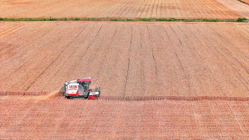 收割機在麥田作業