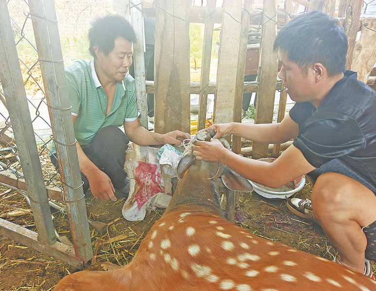 “再有半個月母鹿就要生產了,接生時一定要注意觀察……”6月11日中午,在洛南縣景村鎮景豐村董建良家的院子里,張朋濤在幫其割鹿茸后準備返程,臨行前,他反復叮囑。