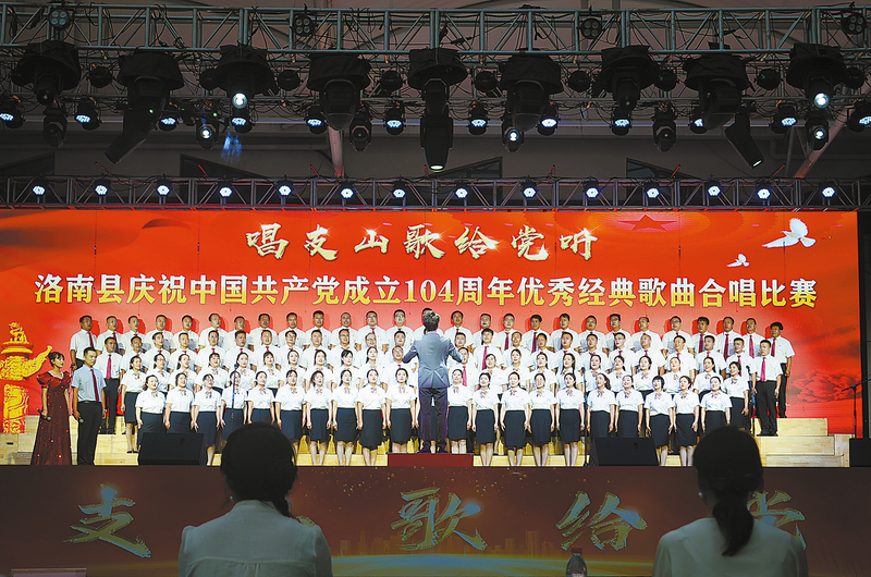 6月24日至26日,洛南縣慶祝中國(guó)共產(chǎn)黨成立104周年優(yōu)秀經(jīng)典歌曲合唱比賽在縣體育場(chǎng)開唱,28支參賽合唱隊(duì)通過一首首耳熟能詳、膾炙人口的優(yōu)秀經(jīng)典歌曲,表達(dá)對(duì)黨、對(duì)祖國(guó)深深的熱愛之情。 (本報(bào)通訊員 郭夏季 攝)