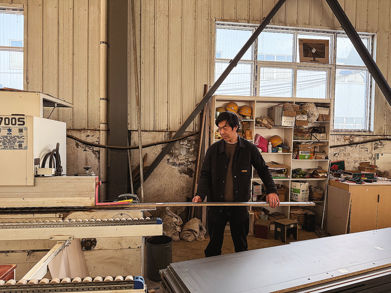 廠房的機(jī)器旁,郭肖銳正在加工板材。