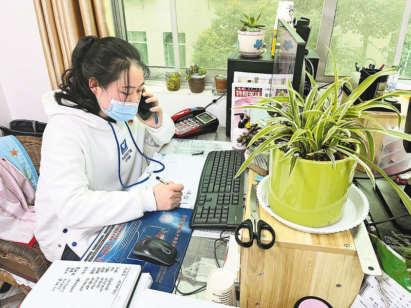群眾打電話咨詢防疫政策等情況,張敏耐心解答。