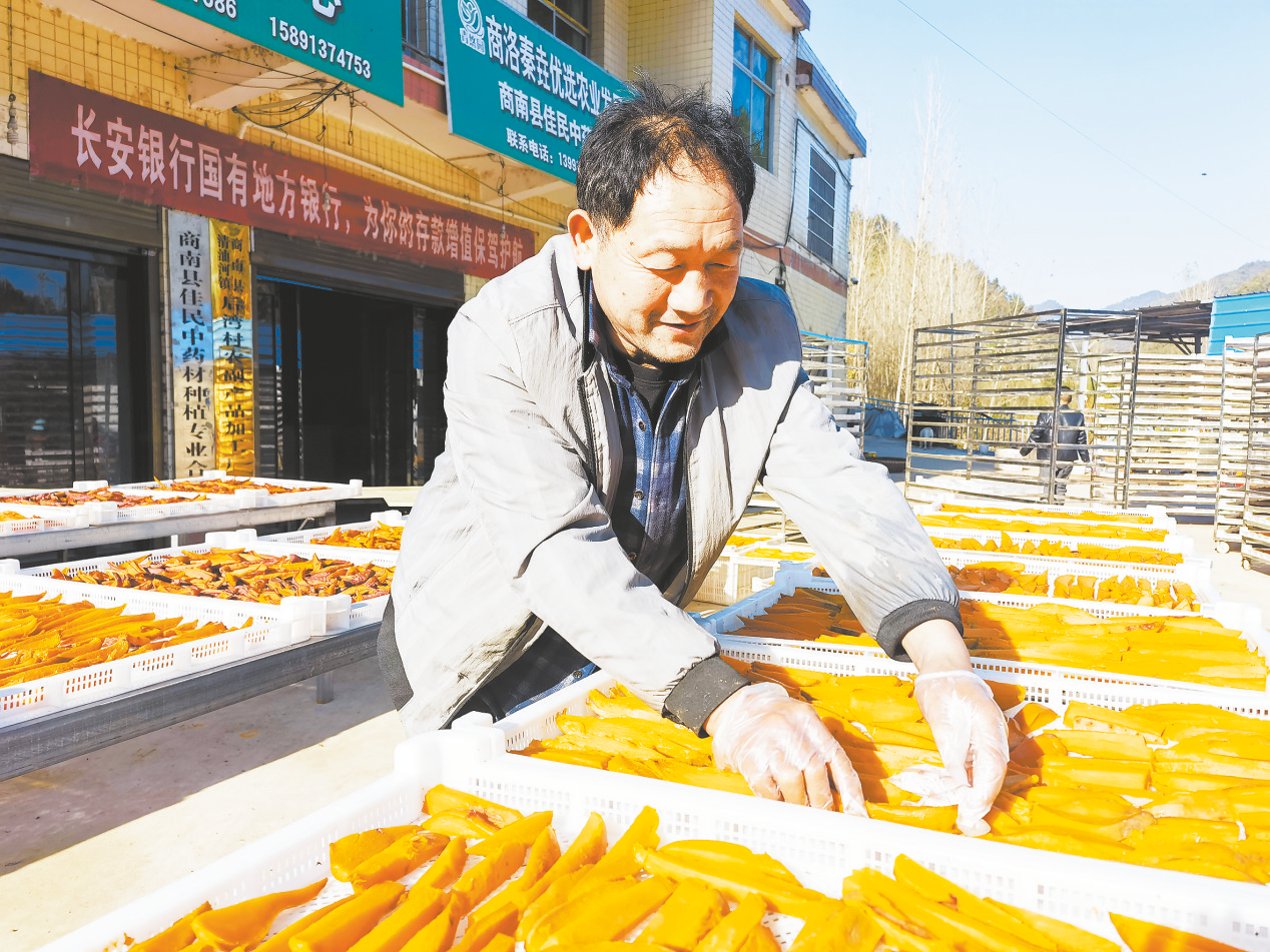 “來來來,過來吃紅薯干哦!”商南縣清油河鎮致富帶頭人李青華一邊擺放切好的紅薯干,一邊招呼著過往熟人。