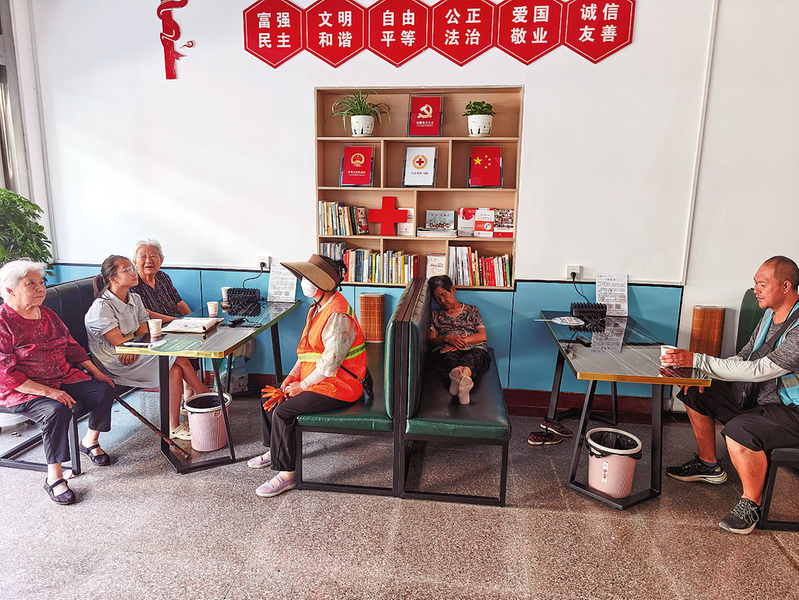 住在附近的楊燕珍老人,常和老朋友們一起來(lái)這里納涼聊天;上小學(xué)五年級(jí)的李皓螢,暑期與同學(xué)相約在此讀書(shū)學(xué)習(xí);出租車(chē)司機(jī)王昊剛則習(xí)慣在路過(guò)時(shí)接上一杯水解渴。