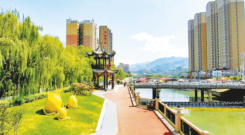 在山陽縣城濱河公園,碧水藍天與現(xiàn)代城市構(gòu)成美麗畫卷。