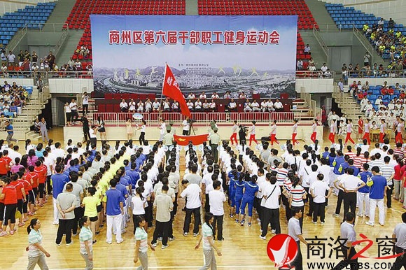 7月19日,商州區(qū)第六屆干部職工健身運動會在市體育館開幕。本次運動會共有50個代表團,3148名運動員,將參加籃球、乒乓球、羽毛球、廣播體操、拔河、趣味六大項比賽。(記者 楊鑫 攝)