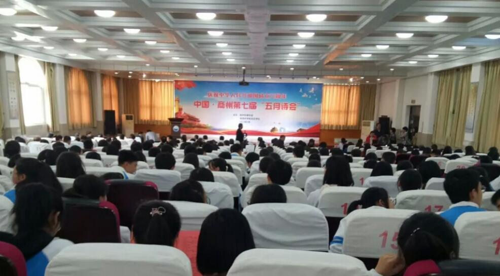 5月11日,由商州作家協會和商洛市中學陽光文學社聯合舉辦的慶祝中國人民共和國成立70周年“中國.商州第七屆五月詩會"在商洛市中學隆重舉行。著名作家、《小說月報》執行副主編劉潔,商洛市文聯副主席、商洛市作協主席魚在洋等到會指導,市直單位作家詩人、商州、洛南、丹鳳、山陽作協部分會員以及商洛學院、商洛市中學師生500余人參加詩會。