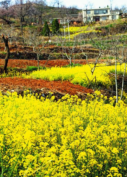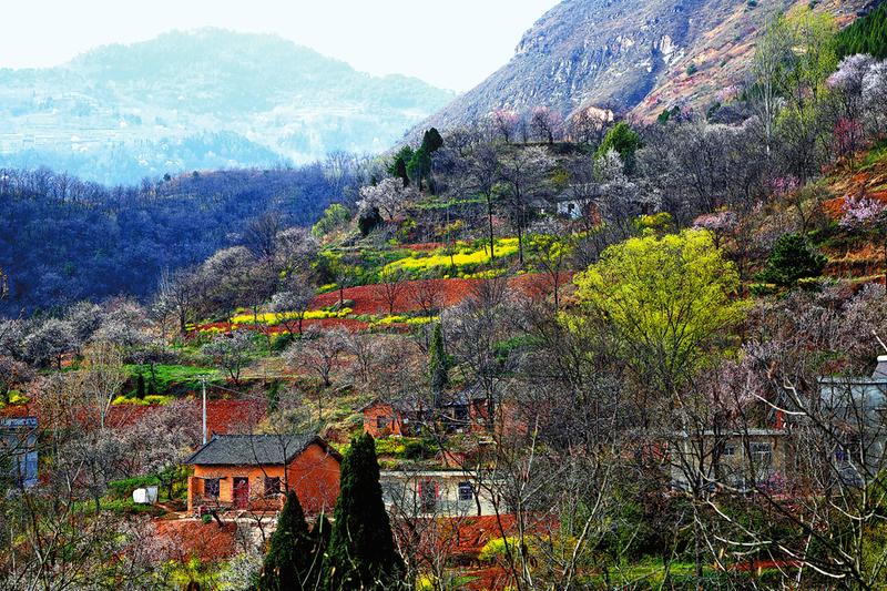 走在通村水泥路上,農家院落四周是一片片金色的油菜花,勤勞的蜜蜂在花叢中不知疲倦地勞作;白色的櫻桃花迎風怒放,村民在樹下施肥,期待著三個月后的豐收;白色的杏花、粉色的桃花也不甘示弱,映襯著村民們開心的笑臉。