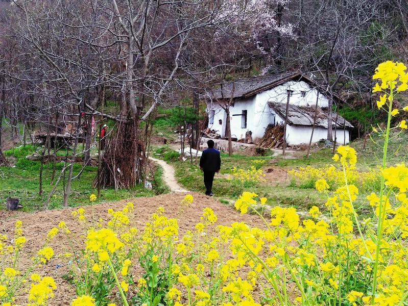 放眼西窯村,山巒層層疊疊,盤繞在山間的通村水泥路如銀鏈環繞,連接著山里人家。村民在山坡地里采挖菊芋、種植中藥材,空氣里散發著春天的泥土氣息,金黃的油菜花和連翹花相映生輝,雪白的棠梨花和櫻桃花似一團團白云,柳絲氤氳著一片又一片綠霧,炊煙裊裊,令人賞心悅目。