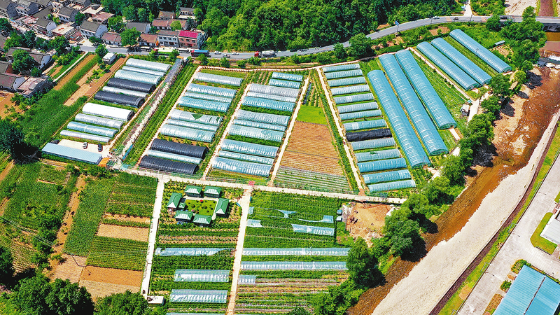 “盛澤園”是商州區按照“農業產業化、綠色化、景區化、品牌化”發展思路提升改造的新型農業產業化園區。在建設過程中,通過“專家聯支部,支部建園區,園區聚能人,能人興產業,產業帶農戶,農戶促振興”的方式,推動“菌蔬輪作、菌渣堆肥、菌湯研發、藥材種植及休閑體驗”轉型,建成“林下有藥、樹下有菜、菌蔬輪作、親子體驗”的功能型、集約型、體驗型、綜合型休閑農業和鄉村旅游產業。圖為7月17日“盛澤園”航拍圖。