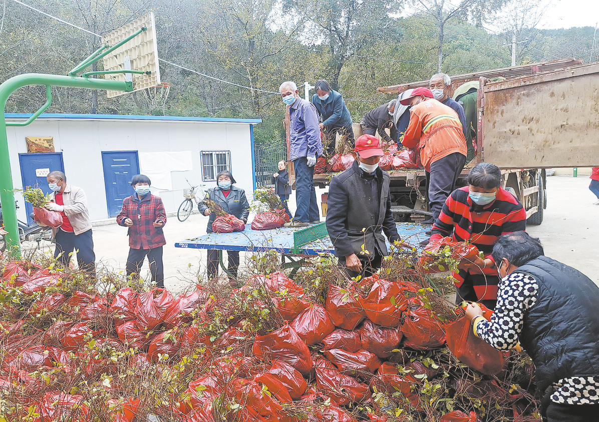 五味子苗買(mǎi)回來(lái)了,大家一起卸車(chē)。