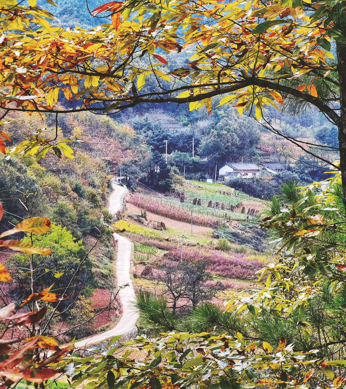 從中心村向北,鉆進(jìn)一條陡峭的山谷,水泥路兩邊是繁密的栗子樹,葉子被秋風(fēng)染得金黃。用腳隨便撥拉幾下路邊的落葉,滾出不少毛栗子。