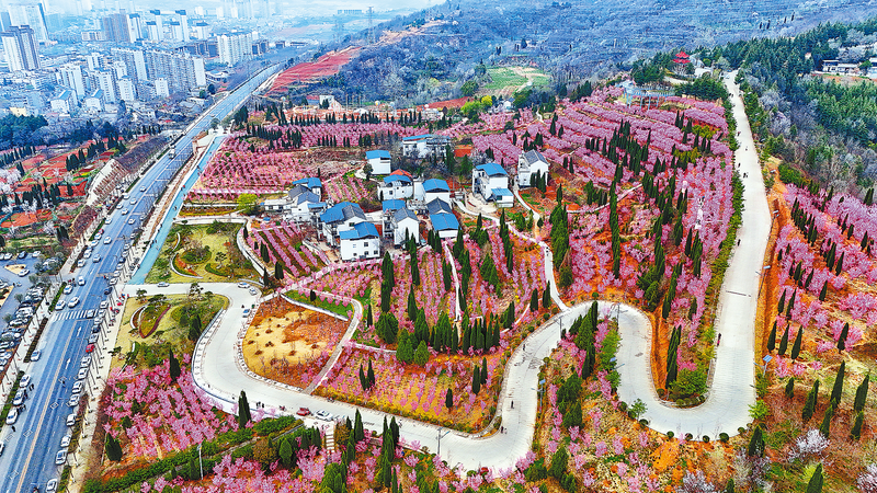 3月24日,商州區(qū)金鳳山花海公園內(nèi)紅梅進(jìn)入盛放期,吸引了大批游客前來賞花,成為商州旅游的網(wǎng)紅打卡地。(本報(bào)記者 楊 鑫 攝)