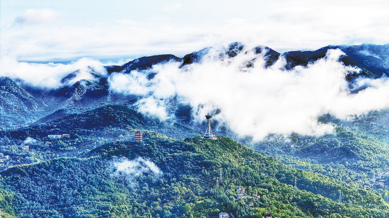 近日,雨后的商州區(qū)金鳳山上,繚繞的白云與山上的植被相呼應,形成了一幅優(yōu)美的生態(tài)畫卷。 (本報記者 楊 鑫 攝)