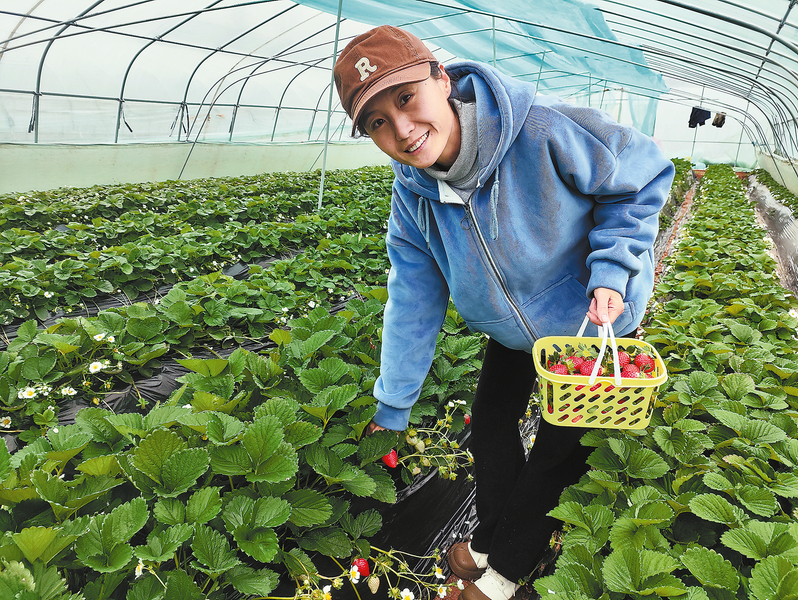 11月13日,位于商州區夜村鎮綠緣現代農業園的草莓種植大棚里,種植戶正在采摘今年11月份第一茬上市的草莓。眼下,我市冬草莓陸續成熟,搶“鮮”上市。 (本報記者 楊 鑫 攝)