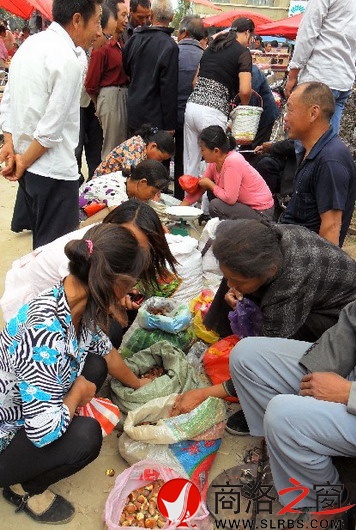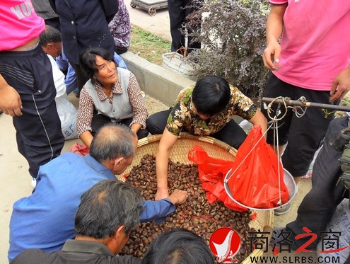 中秋節前后,洛南縣景村鎮的板栗大獲豐收并陸續上市。集市上山里農民小包提、大袋裝的質優價廉的板栗,吸引得廣大顧客爭先搶購,外地客商也上門大量收購,集市交易十分火爆。圖為景村街板栗集市一角。