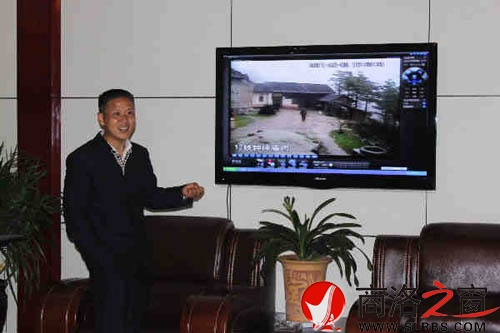 本網訊 (高軍軍/攝) 天竺山管委會耗資400多萬元建成數字監控系統。該系統設有31個攝像頭,100個高音喇叭。監控系統能有效的實時監控景區的客流流量、衛生環境,特別是還能監控重點路段的安全狀況以及林區的火災隱患。如果發生緊急情況,監控系統除能清晰反應火場情勢,還能通過高音喇叭疏導山上的游客按照既定撤退路線安全撤退。圖為景區工作人員為客人介紹監控景點畫面。