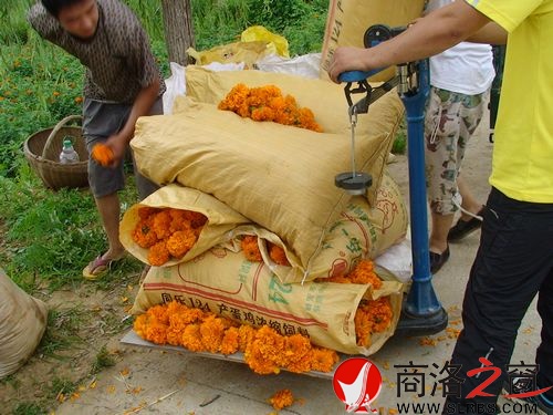 為了促進農民增收,今年4月,洛南縣謝灣鎮政府適應市場需求,鼓勵群眾種植了200多畝萬壽菊,并同西安華瑞公司簽訂了收購合同。經過兩個月的生長,大田里萬壽菊競相開放,各種植戶全家總動員采摘著花朵,看著一包包的萬壽菊被裝車運走,他們的臉上洋溢著豐收的喜悅。